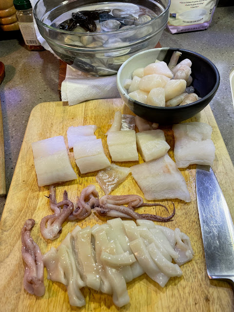 We did some things to change our eating habits this year, lots more fish, and especially for me, smaller portions, such as these meals of cod, scallops, and salmon.