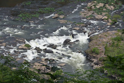 Meanwhile we learned of the Sandstone Falls and there was a gorgeous picture of it in the visitor center. It said it had a nice 3/4 mile loop trail and a picnic area, so off we went with our picnic lunch the next day. It is the largest waterfall on the New River, about 1500' across with a height from 10' to 25'.