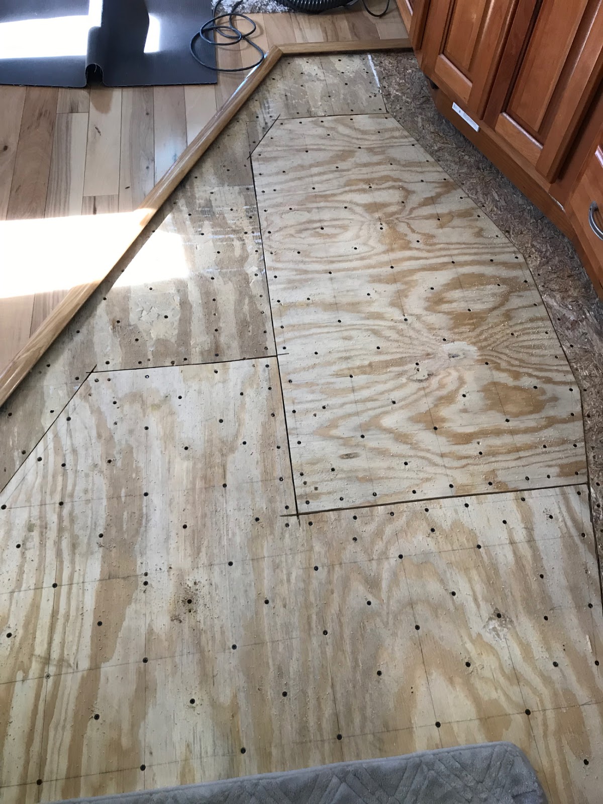 | Jan applying floor leveler |