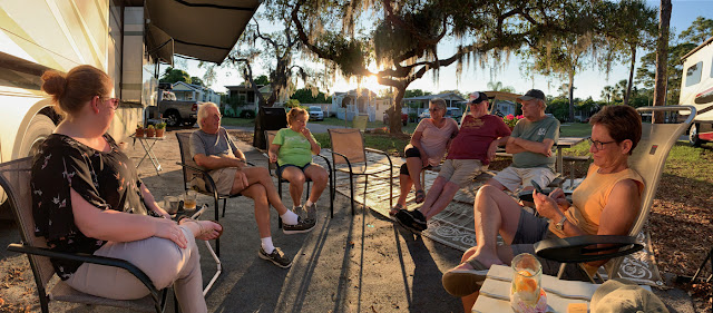 Our neighbors here in the park, Harold and Debbie had to leave early to fly home, and after a few weeks Harold and their daughter, Caley came down to take their motorhome back north. It was nice to see them and we had an impromptu get together to wish them bon voyage.