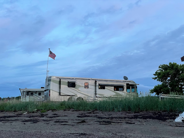 We did end up changing our plans, again, and decided not to go north when Karen and Tom left. It was forecast to rain over an inch and the campground we were heading to in northern Maine was all grass, and we were afraid of getting stuck, so we extended 2 nights in Eastport instead. We did have to move sites up off the water but the views weren't too shabby.